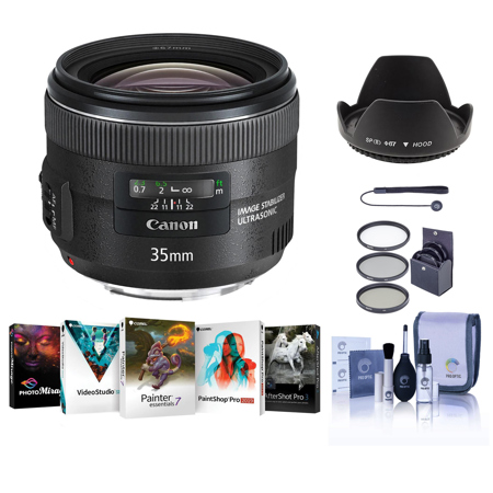 The Canon 35mm f/2 IS lens is a modern day update to a versatile, compact and lightweight wide-angle Canon classic. The EF 35mm f/2 IS USM offers image stabilization, and what Canon says is image quality and construction designed for use on any EOS digital camera. With a redesigned mechanical and optical structure, the EF 35mm f/2 IS USM features a GMo aspherical lens element for high image quality with improved performance in the periphery. It incorporates a rear focus system and ring-type USM for faster, more precise autofocus performance. Full-time manual focus enables manual focusing while in AF mode, a micro-stepping drive provides quieter operation and a low speed focus drive delivers optimal results for video shooting. Canon Optical Image Stabilizer system delivers the equivalent effect of 4 stops and can detect normal shooting or panning, and automatically switches to the optimal IS mode. Compact and lightweight, the EF 35mm f/2 IS USM has an 8-blade circular aperture diaphragm for soft backgrounds, a minimum focusing distance of 0.79 ft./0.24m, plus optimized lens coatings for minimized ghosting and flare.