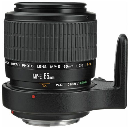 A unique manual-focus lens designed exclusively for macro shooting, between life-size (1x) and 5x life-size - at its maximum magnification, you can fill a 35mm frame with a grain of rice. Compatible with the Macro Ring Lites and Macro Twin Lite, it eliminates the need for awkward bellows accessories for many macro shooters. The optical system uses a floating system to preserve optical quality at different focusing distances, and features a UD-glass element.