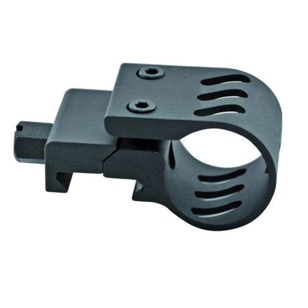 The Tactical Aluminum 3/4" Flashlight Mount features a sleek and slim design that keeps your flashlight close to the weapon and out of the way. It allows rear thumb on/off operating or remote switch activation.