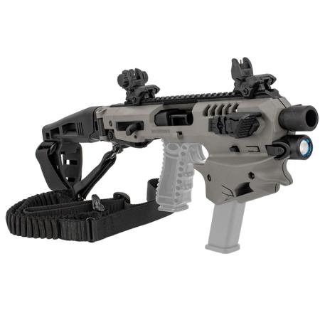 The kit includes ergonomic thumb rests for both left and right-handed users, a push-button sling swivel, a one-point sling for easy movement in tight spaces, a flashlight specifically designed for the MCK platform, and a polymer front flip-up sight for precise targeting.