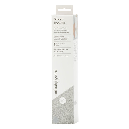Finally, it's glitter you can feel good about. Cricut Joy Xtra Prismatic Glitter Smart Iron-On is a microplastic- and flake-free glitter material that adds a colorful dimension to your heat-transfer project. Plus, there's no machine mat needed - just load and go! It's easy to make your party apparel pop and home decor dazzle - simply cut custom designs with your Cricut cutting machine, then transfer them to create your most dazzling projects. For best results, transfer using Cricut EasyPress.
