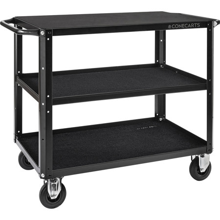 2 black fabric mats with ConeCarts logo embroidered on them for the lower shelves which guarantee greater protection of the cart and tools