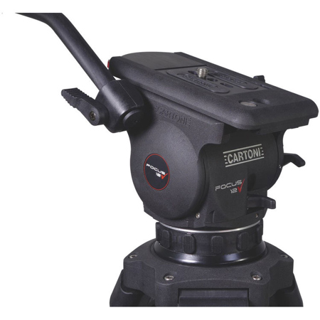 The Focus 12 Fluid Head is the ideal support for the latest cameras weighing from 0 to 12 kg (26 lbs). Extremely compact and lightweight, the 12 features a continuously variable fluid damping system on both pan and tilt movements and a unprecedented patented variable counterbalance which brings its range of use to cover all existing ENG cameras. The 12 Fluid Head comes equipped with a quick release Euro-style sliding camera plate, illuminated spirit level and orientable pan bar.