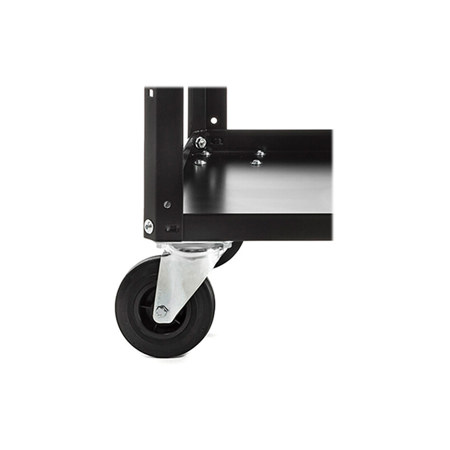 Swivel wheel with support in galvanized steel sheet and dust cover, swiveling on double ball bearing. Band: black vulcanized rubber, hub on roller bearing.