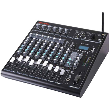 The Cerwin-Vega CVM10 is a powerful mixer for DJs and artists. It features 10 channels for all your pro audio needs. This mixer is built strong with a tough steel frame. It handles the bumps of travel and live shows with ease. It is the best choice for clear sound and wireless freedom.