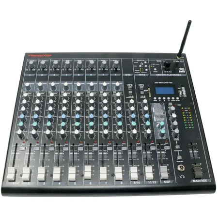 The Cerwin-Vega CVM12 is a powerful mixer for DJs and artists. It features 12 channels for all your pro audio needs. This mixer is built strong with a tough steel frame. It handles the bumps of travel and live shows with ease. It is the best choice for clear sound and wireless freedom.