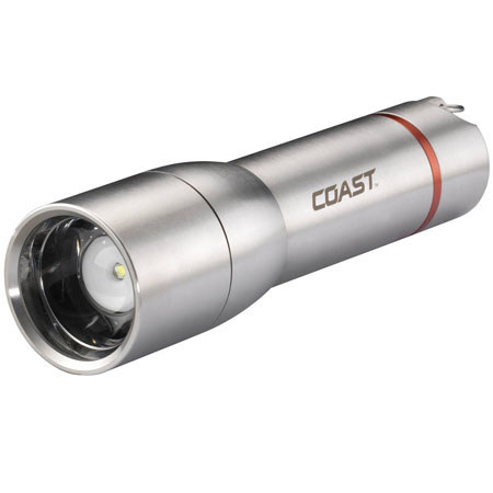 This is a beautifully made stainless steel flashlight that has some weight to it. It has the switch in the back that turns on high then off then low then off again. If you pause for a few seconds it turns on high each time. The front slides to adjust the focus of the beam and locks in place with a twist. There is a sleeve behind the red band that turns then slides back to provide access to a charging port with a LED indicator. If you bend the lanyard ring over a bit you can use this sleeve to sit the light vertically. COAST has been my go to after buying eight headlamps at the store and the only one I like said COAST on the side.