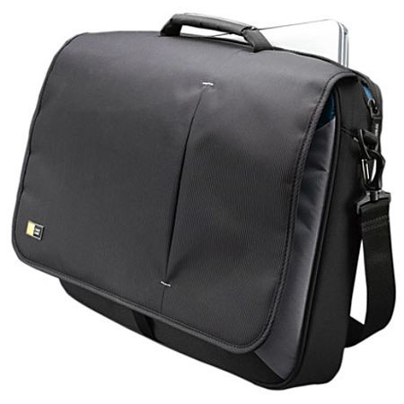 Contemporary messenger styling with convenient top-load access for laptops with up to a 17" screen. Roomy storage underneath flap for files, power brick and other bulk storage needs. Accessory pockets for portable mouse, iPod, cell phone and pens in secure front wall zipper compartment. Integrated neoprene USB drive pocket. Removable shoulder strap and padded handle. Luggage strap securely attaches messenger bag to most rolling luggage.