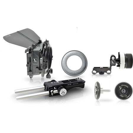 The Chrosziel 450-R2 Dual Stage Matte Box easily fits onto industry standard 15mm support rods and perfectly meets the requirements of shooting with compact camcorders and DSLR cameras, allowing you the ability to have greater control of light angles and lens flare. This matte box offers a double rotating filter stage, a 16:9 mask, two filter holders (one that can accept 4 x 4 and another that can be adjusted accepting 4 x 5.65" and 4 x 4" glass filters), a French flag and pivot mechanism for side wings. The Chrosziel 450-R2 Dual Stage Matte Box also includes a bracket for 15mm support rods and a cover end plate with thread 114 + 110mm.