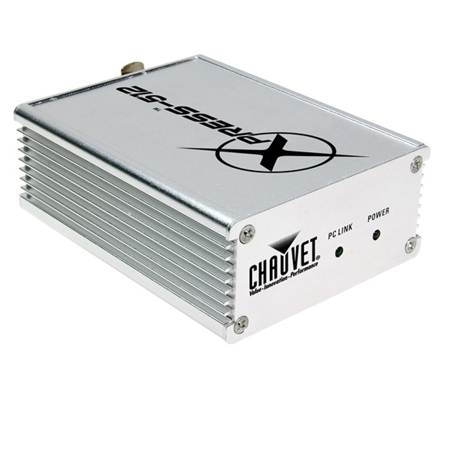 The CHAUVET Xpress 512 is a self-contained DMX interface for the Showxpress software. It transmits 1 DMX universe or connect multiple units to control multiple universes. The interface creates unlimited shows when operating with a computer. It is compatible with Windows and Mac OS X systems.