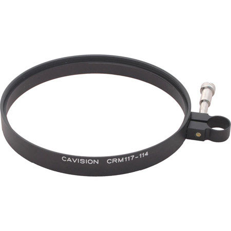 The Cavision 114 to 117mm Clamp-on Step-up Ring features a rear clamp with an inside diameter of 114mm. The clamp can be fitted onto a lens and provides a threaded interface for 117mm filters.