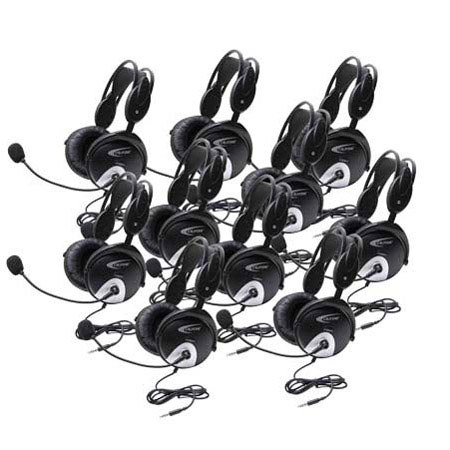 The Califone 4100AVT-10L Headset (10 Pack) is designed for learning with mobile devices. Its unidirectional mic and noise-reducing Around-Ear earcups are ideal for high speed internet use for distance learning applications, tutorials, language learning and situations requiring isolated vocalized feedback. The 4100AVT-10L is Windows and Mac compatible.