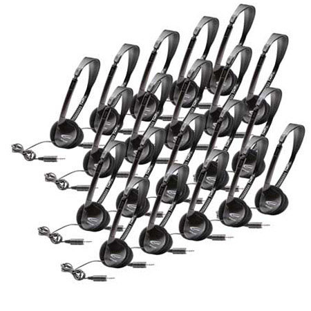 The Califone 8200HP-20L 20-Pack Digital Stereo Headphone is ideal for casual listening. Its adjustable headband, on-ear earcups and recessed wiring make it a convenient and comfort- able headphone for multi-purpose class- room applications, computer labs, libraries and listening centers.