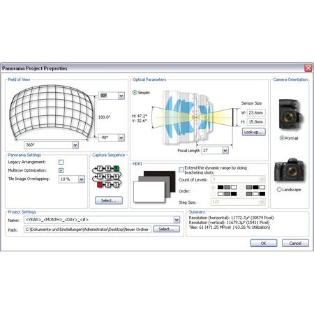 The software RODEONpreview treats every panorama prior to its capturing as a single unique project. Within that project all parameters regarding the recording, deliberately made settings, META information and not to forget the name of every single image file are stored. For a better handling a separate directory is been created for every project, which gets the same name as the project itself and which contains all relevant files like the project file, the original image files as well as any exported data. The user has the ability to control a connected RODEON VR Head directly out of RODEONpreview and to get the captured images instantly displayed within the software. The functions are optimized to allow a fast and straight-forward examination of all captured image data and to easily get connected to any third-party software product.