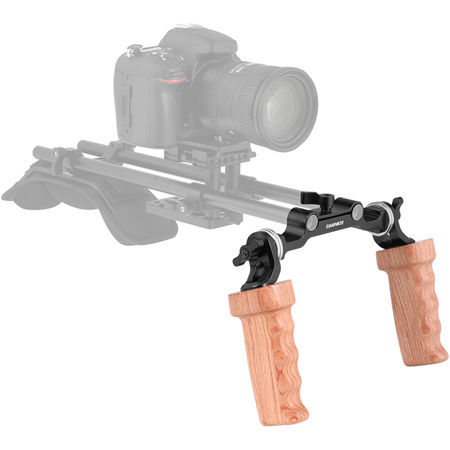Under the banner of professional camera equipment, the CAMVATE Dual ARRI Rosette Wooden Handgrip with 15mm Railblock stands out as a versatile and reliable addition to any DSLR shoulder mount rig. This sturdy handgrip system, crafted from high-quality, durable wood, offers an adjustable dual grip setup that enhances stability and control during shoots.