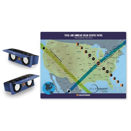 The EclipSmart 2X Power Viewers Kit is designed to view eclipses and general solar viewing for you and a friend- at 2X magnification! You can even see sunspots on the surface of the Sun. The 2X Power Viewers fold up and fit easily in your pocket. The included Eclipse Transit map/24x36 inch vintage travel poster has detailed information for the 2017 total solar eclipse and can be hung on your wall.