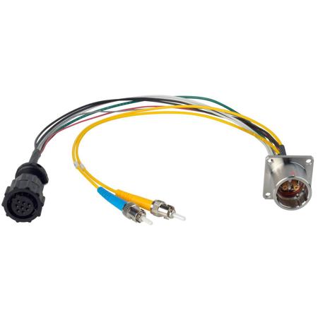 Hybrid Fiber Lemo EDW to Duplex Fiber & 8-Pin AMP Power Internal Distribution Cables. Internal distribution breakout cables for Panel Mounting in Blank Panels or as a Replacement in Hybrid Devices. Order these pre-terminated SMPTE hybrid breakout cables with Lemo 3K.93C connectors feeding out to choice of duplex ST or LC optical connectors with power. Power breakouts feature copper leads wired to AMP connectors or blunt ends. Perfect for use in SMPTE rack panels, splice trays, adapters and wall boxes. Breakout series is UPC machine polished to meet or exceed all SMPTE 304M/311M standards.