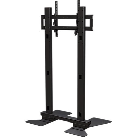 The S90 base model includes both, flat mounting brackets as well as tilt brackets with built in dual keyed locks. Features through-column cord management, cord wrap brackets capable of holding 50 feet of heavy gauge extension cable and removable handles for safely transporting the stand. Constructed of heavy duty high grade steel with epoxy powder coating. The flat, stationary base is perfect for high traffic areas and can be free standing or attach directly to the floor with virtually no footprint.