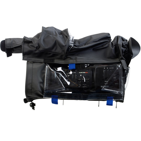 The camRade wetSuit HC-x1000 is a black soft flexible waterproof rain cover that protects your camera against the elements. It also covers the viewfinder, microphone and other accessories. The rain cover is designed specifically for the Panasonic HC-x1000 camcorder. The near silent fabric minimalizes unwanted sound effects caused by wind and rain and reduces the chance of the camera overheating by allowing hot air to escape via the breathing material which the cover is made of.