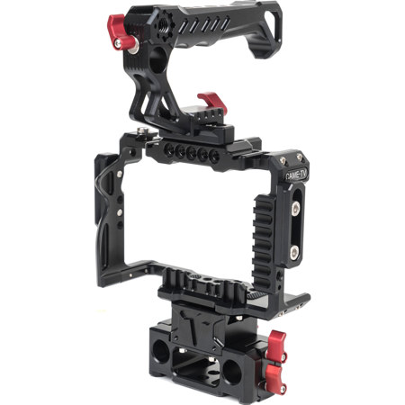 Our modular cage is designed to fit the Sony A7SIII perfectly. This cage provides easy access to the battery allowing you to replace it without removing the camera from the cage. CNC Machined from aluminum this cage is light weight and very strong. There are lots of threaded holes on the cage to attach accessories. The included base plate and handle have 15mm rod hole(s) which allows for mounting accessories and expanding the rig.