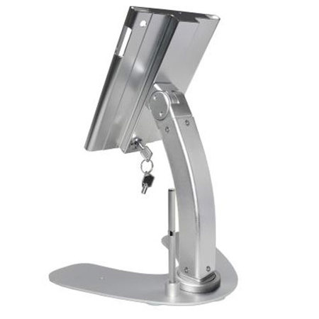 The stand includes a secure lockable case enclosure that can be locked and unlocked with the provided keys.