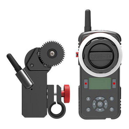Use the Astral 2.4 GHz Wireless Follow Focus System from CAME-TV to wirelessly control the focus, iris, or zoom of most DSLR, mirrorless, or cine-style lenses. The core of the system is the pairing of the focus control motor and the focus handwheel. The units can connect to each other from 328' away using a 2.4 GHz wireless signal. The motor can be mounted using its integrated 15mm rod clamp, and the focus wheel controller can be mounted using its 1/4"-20 thread.