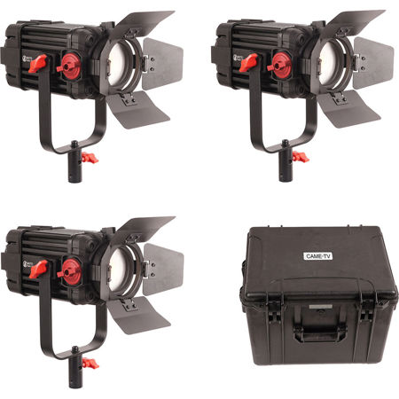 The video light includes an adjustable Fresnel lens to help focus the light and provide a longer throw. When used without the lens, the light becomes a wider flood and the included barn doors help to control the spill. This versatility allows you to go from a tight spot to a wide flood all in one continuous light. Built specifically to be used on set the light features a housing that is designed to dissipate the heat during continuous use.