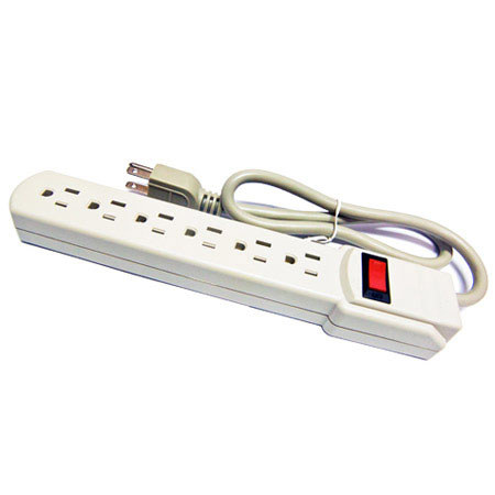 Protect your basic household electronics and home appliances from power surges with the Comprehensive 6-Outlet White Surge Protector with 3' Power Cord. This surge protector is recommended for computers, TV's, small appliances and many other electronic items. Listed by Underwriters Laboratories. Rugged high-impact plastic housing, heavy-duty line cord with molded AC plug and circuit breaker rocker switch.