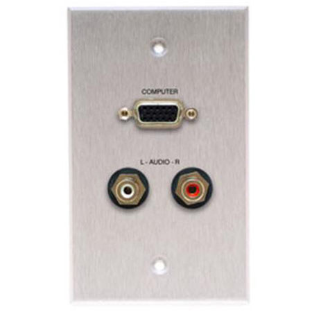 When seeking a robust solution for your audio and video equipment installation needs, consider the Comprehensive Single Gang Wallplate, featuring HD15 and 2RCA passthru. This high-quality wallplate is not only durable due to its stainless steel construction, but it also boasts an anodized clear finish that adds a stylish touch to any setting.
