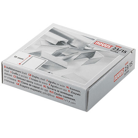 Novus 23-15 Super Premium Heavy Duty Staples (1000 Pack) are manufactured using thicker gauge steel than standard staples and are precision formed to prevent binding in the machine.