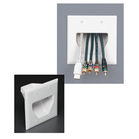 The DataComm Electronics 2-Gang Recessed Low Voltage Cable Plate (Lite Almond) is used to install low voltage cables behind your flat panel TV, your amplifier or other audio and video devices. The plate is designed to be used with 2-gang low voltage mounting brackets. The cable plate can be installed upright or upside down.