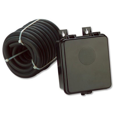 The DCRH-2500 is a very reliable and easy to install driveway alarm. The transmitter operates on one 9-volt battery and has 25' of 3/8" diameter exterior hose that will lie across the drive. When a vehicle drives over the hose, a signal will be sent to the DCR-2500 receiver up to 1/2 miles away (Actual range will vary depending on the environment)