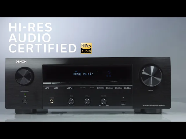 Enjoy superb audio fidelity with your favorite high-resolution audio tracks. The DRA-800H with AKM 32-bit D/A converters features high-resolution audio decoding with multiple lossless file types, including ALAC, FLAC and WAV at up to 24-bit/196-kHz. It's also compatible with 2.8/5.6-MHz DSD files (DSD is the audio coding format of SACD). Play them from memory devices via the front panel USB or over network sources. The DRA-800H also supports other file types such as MP3 and WMA.