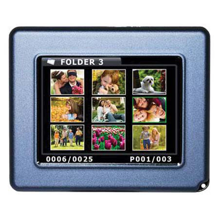 The Pocket Album OLED 2.8 photo viewer features a 2.8-inch (320 x 240) Active Matrix OLED screen with an astounding contrast ratio of 10,000:1. The Pocket Album Deluxe OLED 2.8 holds over 3,000 digital photos with its internal flash memory (exact capacity TBD). You can browse your photos in Photo Thumbnail view and choose between displaying your photos full screen or 2 x 2.