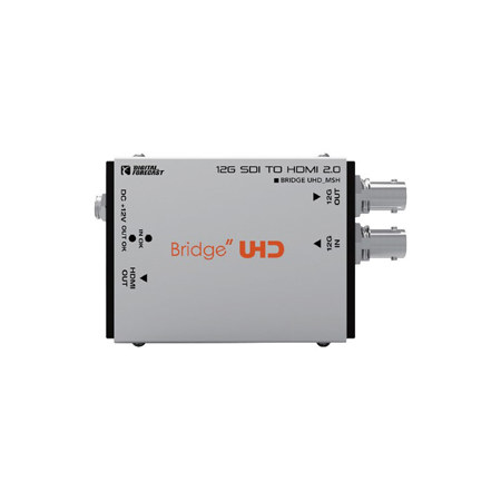 Bridge UHD M_SH converts UHD 4K 12G-SDI signal (Standard Broadcasting 4k signal) to HDMI 2.0 (Up to 4K 4:2:2 60Hz HDMI signal) for the convenient use between Broadcasting Equipment and Commercial display such as UHD TV, monitor.