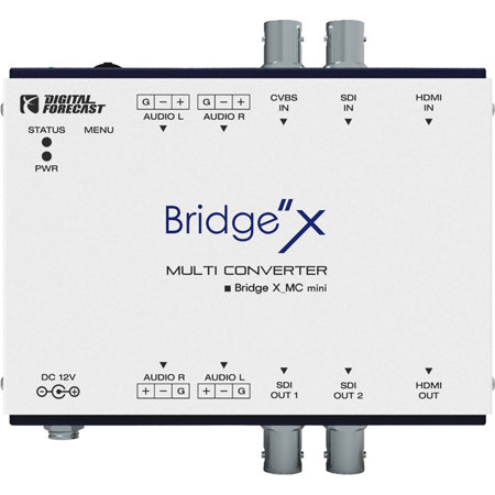Bridge X MC converts video transcoder for all analog and digital video/audio signals. It converts any input signals CVBS, AES/EBU, SDI, VGA, COMPONENT, Analog Audio, HDMI to any of those output signals simultaneously. Multi format up/down/cross converting and Audio Mux, DeMux Function.