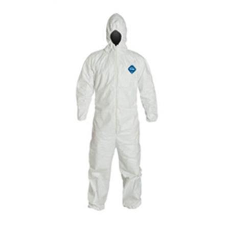Tyvek 400 garments are composed of flash spun high density polyethylene which creates a unique, nonwoven material available only from DuPont. Tyvek 400 provides an ideal balance of protection, durability and comfort of any limited use fabric technology. Tyvek 400 fabric offers an inherent barrier against particles (down to 1.0 micron in size). Protection is built into the fabric itself; there are no films or laminates to abrade or wear away. Tyvek 400 fabric's durability advantage over microporous film fabrics delivers consistently better barrier, even after wear and abrasion. Applications include: lead and asbestos abatement/remediation, general maintenance/operations, spray painting, general clean-up. Comfort fit design based on extensive wearer input to provide the most comfortable garment design that: enables a greater range of movement while stretching and bending, provides a more tailored fit, offers reinforcement in high stress areas for fewer blowouts, utilizes a longer zipper for easier donning and doffing and an elastic waist to better position the garment.