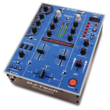 The DJ Tech 2-Channel Twin USB DJ Mixer with 9 Effects BPM Synced is a compact, rugged mixer with dual USB ports for recording and playing stereo audio from a PC or Mac. Two channels features 2 switchable line/turntable inputs and 2 dedicated line inputs. The DJM-303 boasts a flexible 24-bit effects processor with 9 preset effects and 3 crossfade effects. The mixer's in-loop sampler determines the BPM of the input audio for accurate sample loops on the fly.