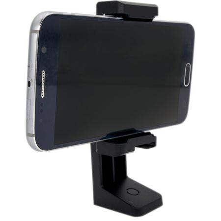 This phone holder expands from 2 1/8" to 3" and has two 1/4 20 threads, bubble level and a cold shoe for a light or microphone.