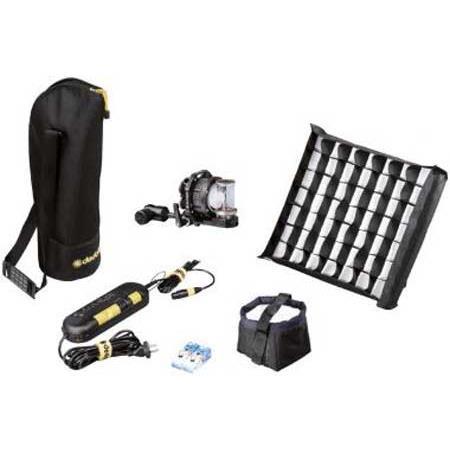 The Dedolight Baby Standard Soft Kit gives you what you need for a softlight set-up: the Dedolight DLH1x150 Softlight Head has an extra reflector, which boosts the output of the included (plus a spare) 150W bulb. The DT24-1 in-line power supply has a sliding dimming switch and is designed to operate with 230 VAC current.