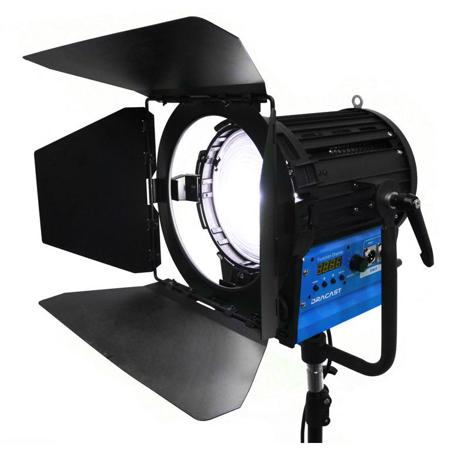 The performance of a high-output tungsten or hmi Fresnel comes together with the advantages of LED technology in the Dracast LED FRESNEL Series. The Dracast Fresnel1000 is a powerful DMX-controlled studio fixture that incorporates cutting-edge technology to provide all the benefits of LED lighting in the classic Fresnel design. This means that Dracast Fresnel series provides tremendous light output while using very little power and releasing very little heat. Add to this a completely silent, passive, heat-sink cooling system and the Dracast Fresnel series is perfectly suited for any major studio application.