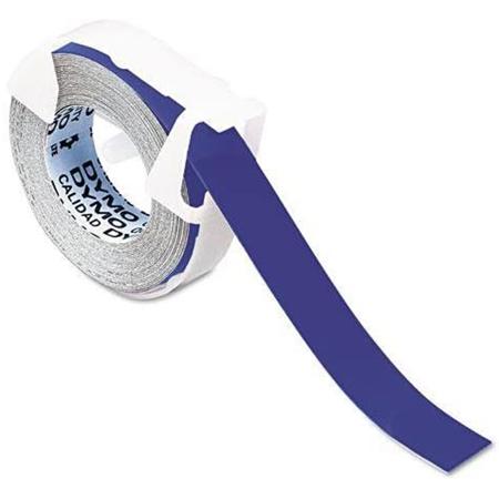 Dymo 520106 is a blue glossy finish self-adhesive labeling tape for embossers, 3/8" x 144" roll.