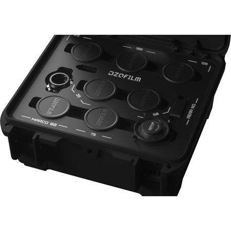 This hard-shell case fits up to eight VESPID prime lenses. This case interior features a laser-cut foam insert that cradles and protects each lens.