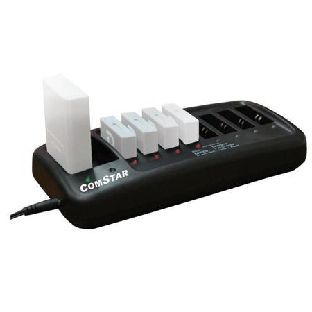 The CH-CS28PEU Comstar Multiport Replacement Desktop Charger is a multi port desktop charger that can charge up to 2 Com-Center batteries and 8 headset batteries. The desktop charger is certified for use in Europe.