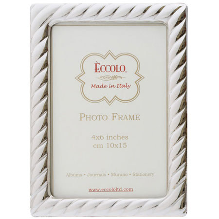 The Eccolo Italian Sterling 4 x 6 inch Silver Frame (Swirl) is made in Italy with 92.5 Italian silver. The frame is tarnish proof.