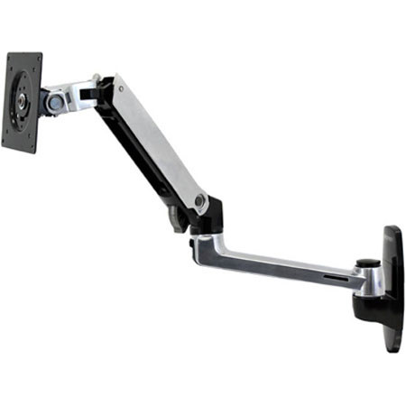 Durable polished aluminum construction! Tested to perform 10 times the expected life-cycle. Sleek and streamlined, the Ergotron LX Wall Mount LCD Arm frees up space and allows positioning of your display for greater productivity. Reposition your LCD with just a touch. Up. Down. Forward. Back. The LX provides unparalleled range of motion.