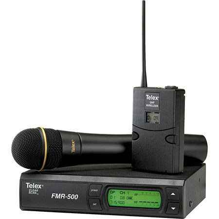 The FMR-500 brings professional features and performance to the small and medium sized wireless microphone installs that are so popular today. One touch Auto ClearScan selects the clearest channel in the clearest group of compatible channels in just seconds with the push of one button. The new HT-500 programmable handheld microphone transmitter is the smallest Telex has ever built and it has a screw-on battery cover that also hides the controls and an LCD display.