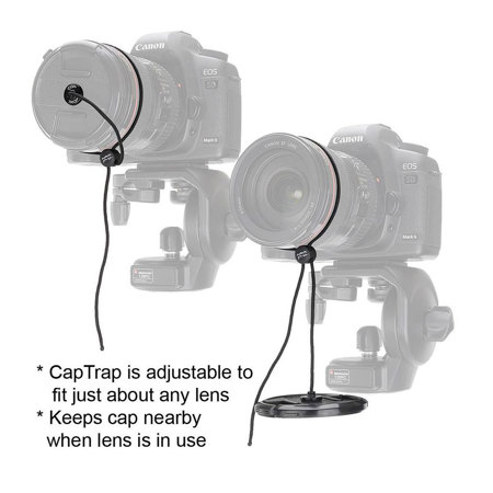 Don't lose any more lens caps - the Fotodiox Pro CapTrap keeps your lens cap close at hand. An adhesive-backed disc secures the lens cap to the paracord which wraps around the lens barrel. The cord lock on the paracord allows the CapTrap to be adjusted to fit virtually all lenses regardless of size as well as let you choose how far you want the cap to hang away from the lens so it won't dangle too far or get in your way. The cap remains securely tethered while shooting and is within easy reach for retrieval when finished. Works with all types of lens caps; inner-pinch and snap-on. Purchase one for each of your lenses and never lose a cap again!