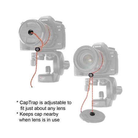 Don't lose any more lens caps - the Fotodiox Pro CapTrap keeps your lens cap close at hand. An adhesive-backed disc secures the lens cap to the paracord which wraps around the lens barrel. The cord lock on the paracord allows the CapTrap to be adjusted to fit virtually all lenses regardless of size as well as let you choose how far you want the cap to hang away from the lens so it won't dangle too far or get in your way. The cap remains securely tethered while shooting and is within easy reach for retrieval when finished. Works with all types of lens caps; inner-pinch and snap-on. Purchase one for each of your lenses and never lose a cap again!