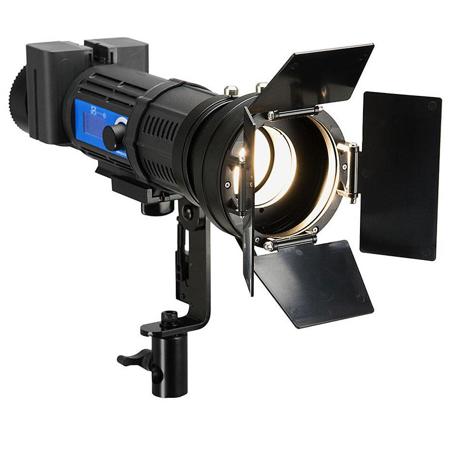 The PopSpot Ultra 50 Bi-color is dimmable from 10-100% power and is adjustable from daylight through tungsten color balance at 3200k-5600k while maintaining a CRI>=95 and a TLCI rating >=96, providing faithful and accurate color rendition. You can easily add color gels or diffusion materials for softness using the integrated filter frame. The included 4-way barndoors help you illuminate areas that you want while keeping light from areas that you don't. In addition the PopSpot Ultra 50 features a Profoto style accessory mount, allowing you to use your favorite light modifiers such as reflectors, snoots and softboxes.
